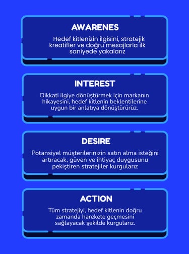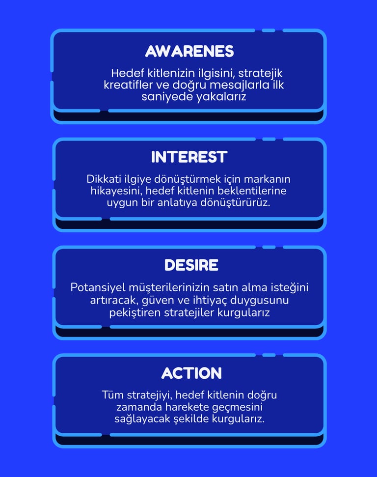 Her başarılı stratejinin ardında bir müşteri yolculuğu vardır Biz bu yolculuğu AIDA modeliyle tasarlıyoruz.